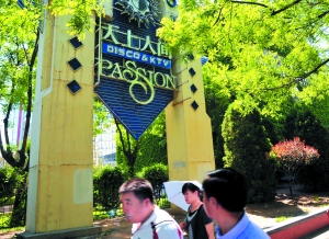 位于北京東三環邊的“天上人間”標牌。5月11日夜,這家“被神話”的夜總會,因存在有償陪侍被有關部門勒令停業6個月。樊甲山 攝