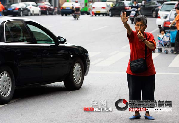 從此,這個(gè)脖子上吊著塑料口哨、手臂上掛著紅袖章的老人便一發(fā)不可收:每天早早來(lái)到十字路口,立正稍息,口哨加手勢(shì),不放過(guò)任何一輛亂停亂靠的車(chē)子,一晃兩年。