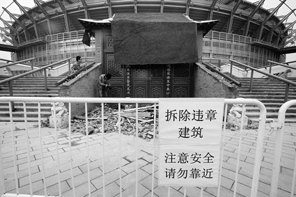 定性“違建”悟本堂深夜被拆 摘除牌匾房頂開拆出租方:與奧體整體風格不符建設時曾多次制止但對方“一直偷偷施工”