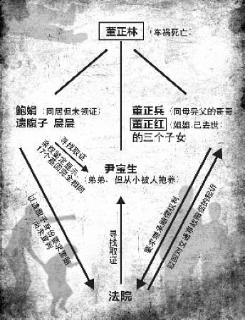 我打官司的目的,就是要為這個孩子正名,我不想讓孩子丟臉。”鮑娟昨天在法庭外說。來自安徽的她已是40多歲的年紀,可在與南京人董正林同居后卻很快懷孕。不幸的是,就在她等待愛情的結(jié)晶時,董正林卻在車禍中遇難。董正林同母異父的哥哥卻不承認鮑娟腹中孩子的身份,他們先提起了道路交通事故索賠。而面臨絕境的鮑娟卻突然得知,董正林有個親生弟弟雖然早已被抱養(yǎng)改名換姓,卻仍然在附近生活。董的遺體已經(jīng)火化,在科學(xué)上,這是唯一能證明孩子身份的關(guān)鍵人物,于是她和法院一起展開了尋找……