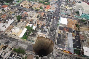 5月31日,危地馬拉城街頭出現(xiàn)一個(gè)約61米深的巨坑;6月4日,浙江衢州高速公路出現(xiàn)直徑8米、深度10米的大坑;6月4日,江西南昌市一處路面突然塌陷。而此前,四川成都、廣西來賓等地方也都出現(xiàn)過天坑……