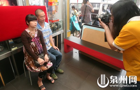 照相館拉開一塊紅布,阿鑫和阿晴并排坐在一起,目對鏡頭,表情有點緊張!耙、二、三!睅追{試,攝影師拍下了一張滿意的照片。