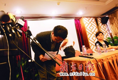 在30日下午舉行的新聞發(fā)布會(huì)上,東部華僑城總經(jīng)理曾輝向死難者家屬和社會(huì)鞠躬道歉。丁玎攝