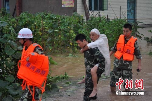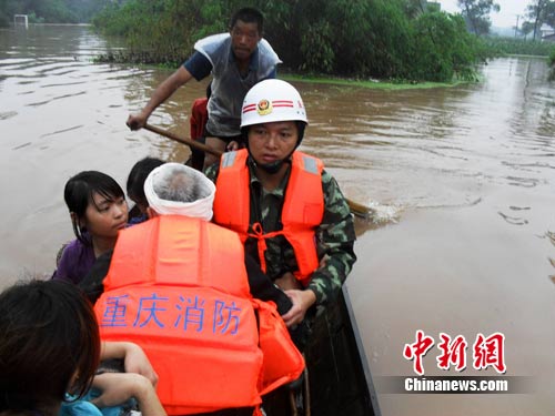 據(jù)介紹,當(dāng)日17時(shí)5分,大足縣21名消防隊(duì)員趕到橫店村。現(xiàn)場(chǎng)消防隊(duì)員稱(chēng),山洪暴發(fā)后,橫店村洪水最深處達(dá)3米,最淺處1米,該村上百間房屋浸泡在洪水之中。