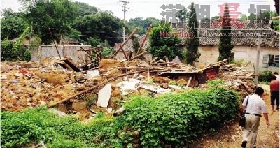 湘潭縣石潭鎮(zhèn)被洪水完全沖垮的一棟房屋。圖/記者李志宏