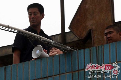 突然,樓頂一年輕女子蜷坐在樓檐邊,拿著擴音器沖著樓下哭訴的女子大喊,“你快回家照顧孩子,有我這一條命就夠了。”見樓下女子仍然哭訴不止,樓上者又大喊道,“你快回去,非讓我臨死也不得安生嗎?”
