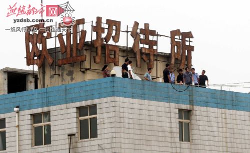 7月14日上午8時50分,本報接到讀者爆料稱,省會橋西蔬菜批發市場內的歐亞招待所樓頂有一家三口人要集體跳樓,有好多群眾圍觀,已報警,警察正在樓頂營救勸說。
