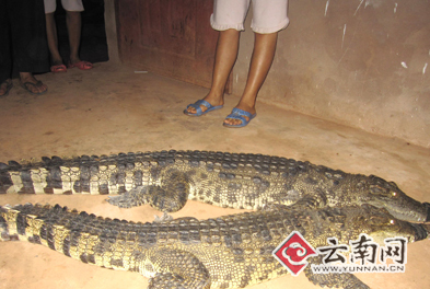 據西雙版納自然保護區勐臘派出所的所長代旭介紹,他們趕到現場后,發現這兩條兩米多長的大鱷魚正趴在李明周的家中,沒有人敢靠近。檢查后也沒有什么外傷,便將其帶回派出所暫時看管。但是,兩條鱷魚是不是中國原產鱷魚,為什么會出現在小磨公路的隧道中?警方表示還在調查。(記者 戴振華 通訊員 常宗波 楊建)