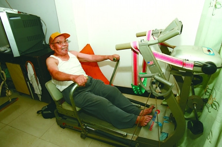 李海和在家中鍛煉身體。本組圖片見(jiàn)習(xí)記者 張永波 攝