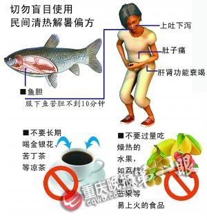 天熱易上火,好心的媽媽聽說魚苦膽可以清熱解暑,給8歲的女兒喂了顆魚苦膽,結果導致女兒中毒致急性腎衰竭。經兒童醫院搶救,其血液被過濾(即將血液引出體外透析凈化、濾去毒素等致病物質)了三次后,才終于死里逃生。