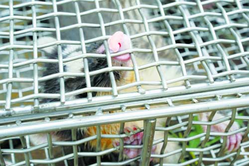 “不知道它是什么動物,全身長滿硬毛,四肢擁有尖爪,看上去牙和嘴蠻鋒利的,就把它關(guān)在鐵籠子里了。”