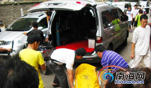 下午15點20分,死者被一輛車牌為瓊AOCP2x的面包車拉走,一名圍觀市民氣憤地說:“120怎能與拉尸者勾結在一起騙人,真是喪盡天良。”