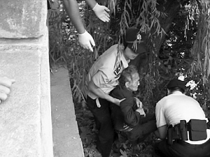 早上7時許,不少市民趁著早上涼快,到位于四象橋附近的秦淮河邊空地上晨練。這時,有人看到一名老太恍恍惚惚地走上四象橋,然后從橋上欄桿里的一個空洞里鉆了出去,滑到橋下3米處的護坡上。隨后,一轉身又從護坡跳到了下面的河中。