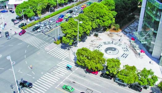 在溫州車站大道和溫迪路交叉口,記者找到了這個(gè)被網(wǎng)友熱議的超大八卦圖。八卦圖位于一幢在建的商務(wù)大廈的門前廣場(chǎng)上,記者目測(cè),約有近百平方米。