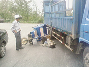 昨天上午,泰興“羌溪花園論壇”出現一則“我今天做了一件好事”的帖子,發帖人“龍騰廣告”稱,4日中午,泰興宣堡北側往孔橋方向的三岔路口發生一起車禍 ,一輛三輪車撞上了大卡車 ,三輪車上的一名老婦受傷嚴重,躺在地上不能起來,路過的群眾都不敢多事。他當時開車正好經過此地,隨即把老婦抱上了車,送往當地宣堡醫院,由于該醫院沒有CT設備,他又開車把傷者送到了泰興人民醫院。