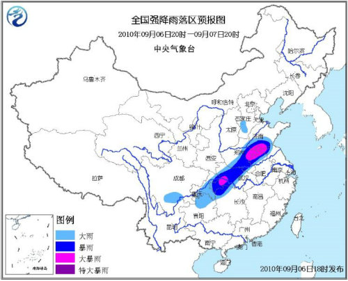 據(jù)中國氣象局網(wǎng)站報道,6日,中國黃河流域到長江流域之間的大部分地區(qū)出現(xiàn)明顯降雨天氣。預(yù)計,6日夜間到7日白天,河南、安徽、江蘇及湖北局地將有大暴雨。