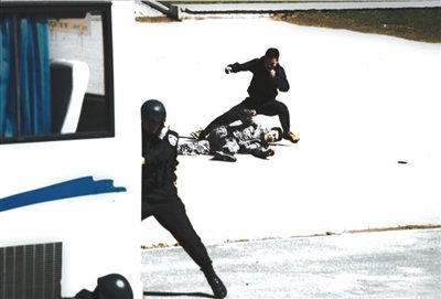 昨天上午,在京郊懷柔某訓(xùn)練場(chǎng)內(nèi),市公安局巡特警總隊(duì)首次聯(lián)合武警特警舉行反恐處突聯(lián)合實(shí)戰(zhàn)演練,北京特警精銳“藍(lán)劍突擊隊(duì)”和北京武警總隊(duì)國(guó)家級(jí)反恐力量“雪豹突擊隊(duì)”同時(shí)亮相。演練中共出動(dòng)特警隊(duì)員400余人,大量反恐特種裝備同時(shí)亮相。警方還特別針對(duì)菲律賓武裝劫持大巴車事件進(jìn)行了反劫持演練。