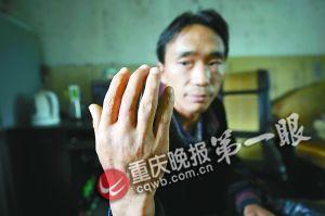 劉大明至今右手手指不能彎曲,喪失勞動能力。 記者 冉文 攝