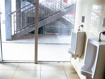 家住漢口的魯先生介紹,10月5日晚,他路過該處去小便,出來后透過廁所的玻璃墻,竟然將里面的情況看得一清二楚,頓時窘迫不已。因當時天色已黑,從亮燈的廁所里面透過玻璃墻看不見外面,他還以為外面是看不到里面的。