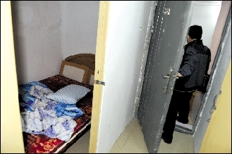 昨日,北京治安管理總隊和豐臺分局聯合掃黃行動中,搗毀了豐臺火車站貨場底商的多處賣淫窩點。民警在介紹一處休閑中心內的暗門。在一處柜子門的掩護下,內部是另一間房間,并裝有防護門,房間一角有逃跑窗戶。新京報記者 趙亢 攝