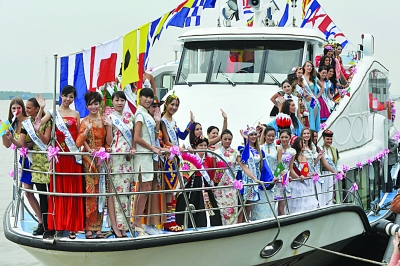 即將參加南京“名城會(huì)”全球生態(tài)小姐世界大會(huì)頒獎(jiǎng)的62個(gè)國(guó)家和地區(qū)的佳麗們,登上游輪成為創(chuàng)新旅游路線的第一批游客。 劉 瀏 攝