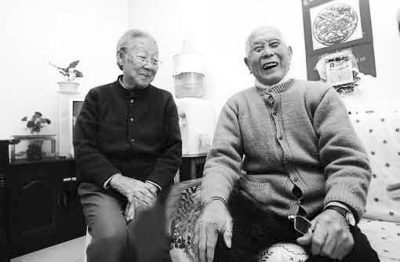 10月上旬的一天上午,河南鄭州市香山路中州頤養(yǎng)家園,93歲的范銘春,正在屋內(nèi)練字。他已經(jīng)滿頭白發(fā),步履有些蹣跚,但面色紅潤(rùn),精神矍鑠,看到有人過來,就樂呵呵地迎出來。一同走出來的老伴范志銘,也已經(jīng)90歲,頭發(fā)斑白,戴著一副老花鏡。