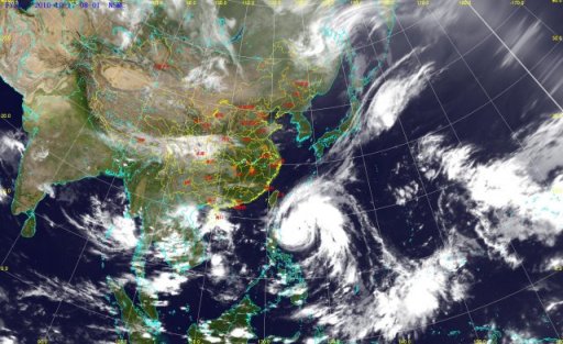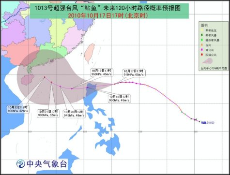 超強(qiáng)臺(tái)風(fēng)“鲇魚”衛(wèi)星云圖(2010年10月17日17時(shí))
