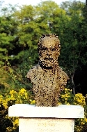 10月16日,為紀念圓明園罹劫150周年,圓明園舉行雨果雕像揭幕儀式,青銅質地的雨果半身雕像正式與游人見面。 新華社發