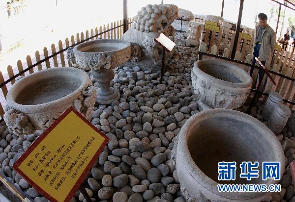 9月27日,游人在參觀回歸文物展。當日,紀念圓明園罹劫150周年系列活動正式啟動。其中,在已經開展的回歸文物展上,包括雕花石洗、雕花石堆、雕花石桌、西洋石構件、石獅子等在內的57類85件石刻向游客開放。據介紹,圓明園流失在國內外的文物至少有150萬件,大部分精華流失在海外。新華社記者汪永基攝