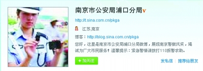 南京浦口警方開微博破竊案 分局警花當封面(圖)