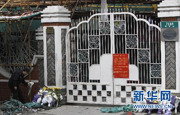 截至16日上午9時(shí)30分,上海膠州路特大火災(zāi)事故已導(dǎo)致53人死亡,另有70人正在醫(yī)院接受治療,其中17人傷勢(shì)嚴(yán)重。眾多市民自發(fā)來(lái)到事發(fā)的大樓外,向逝者敬獻(xiàn)鮮花,表達(dá)哀思。新華社記者 裴鑫攝