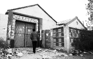 11月11日,北京大興區大洼村,王飛亮在六叔王玉崗生前居住的院子門前徘徊。本報記者 楊杰 攝