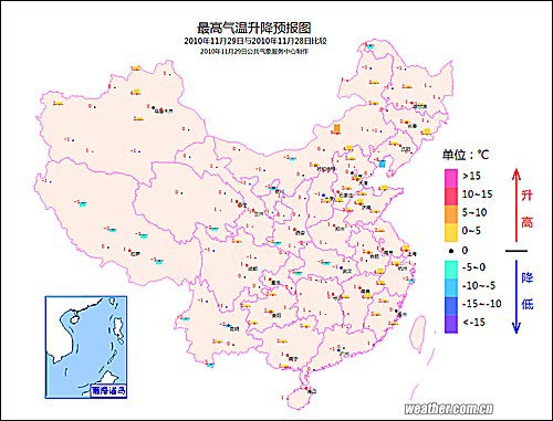 而隨著冷空氣的推進,北方大部未來幾天將再次經歷大風降溫天氣,內蒙古和東北地區又將出現降雪。中央氣象臺預計,11月30日~12月3日,受冷空氣影響,新疆、西北地區東部、內蒙古、華北、東北、黃淮等地有4~6級左右西南或西北風,1日前后內蒙古中西部局地有沙塵,大部地區降溫4~8℃,內蒙古東部、華北、東北的部分地區降溫達10~14℃,局地16℃以上。新疆北部有小到中雪;12月1日~12月3日,內蒙古東部、東北有小到中雪,局地大雪。