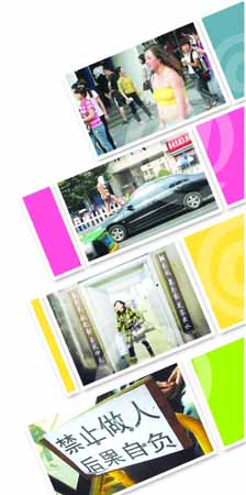 圖1:猛女出街照,形象震撼,網(wǎng)友認(rèn)為,“世間若真有小月月,就該這般模樣”。 圖2:西安最牛收費(fèi)員。圖3:本報(bào)曾報(bào)過(guò)的南大女生宿舍樓玉鳳芙蓉對(duì)聯(lián)也是候選圖片之一。 圖4:公交車(chē)?yán)兹酥甘荆白恕弊儭白鋈恕薄?/FONT>
