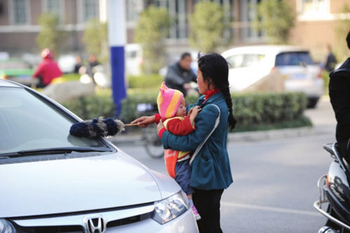 記者調查省城“職業擦車乞討族”,日收入三五十元;聚居城中村,經常換房