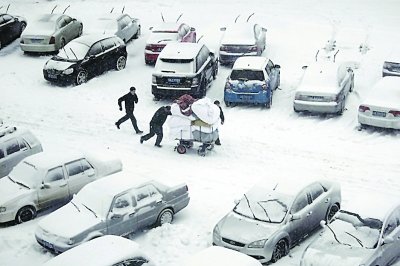 長春普降大雪,不少車主把雨刮器豎起來,防止凍住。本報傳真圖片