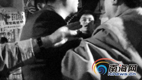 看到執(zhí)法人員沒有將所拍的照片、DV刪除,而且還在繼續(xù)拍攝,另一名客人抓了一下執(zhí)法人員,幾位執(zhí)法人員上前阻攔。這時(shí),之前一直要求執(zhí)法人員刪除照片的那名客人也圍上來(lái),雙方爭(zhēng)執(zhí)不下。為避免事態(tài)進(jìn)一步惡化,執(zhí)法人員立即報(bào)警。