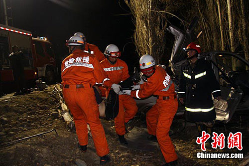 經救援消防人員現場勘察和詢問圍觀人員了解到,這輛面包車是在轉彎過程中撞入右側林帶,車體嚴重變形凹陷,幾棵碗口粗細小樹被撞斷后正砸在車上,后排座位上的3名乘客當場死亡,司機及副駕駛上的4人被卡在變形的車廂內。