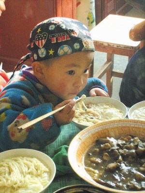 中午吃飯時,她倆手捧起碩大的瓷碗,拿起筷子就把面條扒拉進自己嘴里。有鄰居悄悄對記者說:“別人家孩子這么大時,都還要喂飯呢。”在電視臺記者的“要求”下,心怡拿起角落里的尿盆,為父親接走了不多的尿液。看著長槍短炮追著自己去茅廁,她不時回頭吆喝著“別跟著我”。隨后,她又在父親的要求下,將電飯鍋端到水缸邊,拿起茶缸,從和自己差不多高的水缸里舀出水倒進鍋內(nèi),做出一副要做飯的樣子……