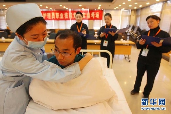 2010年11月25日,全國養老護理員職業技能競賽在北京舉行。 新華網 李欣 攝(資料圖)
