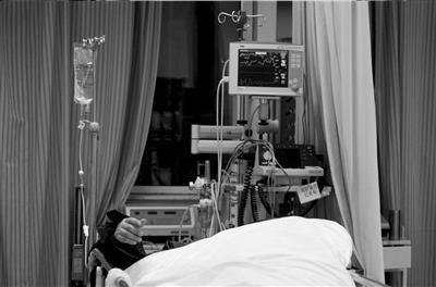 車禍中受傷的老者在醫院接受治療。本報記者潘之望攝