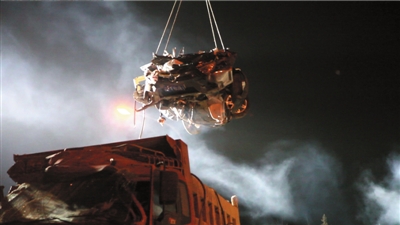 晚10點左右,大貨車被吊車扶正,其間汽修店出現(xiàn)輕微的震動。隨后不久,消防員和急救人員從小轎車內(nèi)相繼抬出4名20歲到30歲左右的男子。經(jīng)檢查,4人均已死亡。