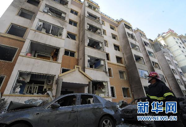 爆炸產生的巨大氣流對周圍十幾棟居民樓產生了破壞性沖擊,距離爆炸點100多米外的一棟20多層居民樓的頂樓窗戶也被震碎,十幾棟大樓幾乎沒有完整的窗戶。小區中除了嘈雜的人聲,就是樓上居民清理碎玻璃的聲音。