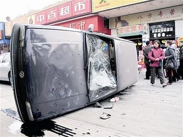 但是,奔馳車司機(jī)卻一邊驅(qū)車追趕,一邊打電話招來一幫準(zhǔn)備為其過生日的朋友幫忙。在追上桑塔納后,奔馳車主駕車在人行道上連續(xù)反復(fù)撞擊桑塔納車,桑塔納車內(nèi)的人驚恐之下棄車跑開,奔馳車主與分乘兩輛車趕來的自己的朋友合力打砸了一通桑塔納車并將其掀翻,隨后見有人報警便迅速離去……