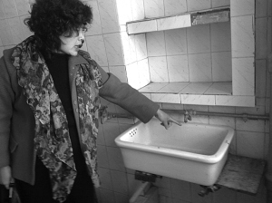 昨天(16日)上午,記者來(lái)到洪樓小區(qū)南區(qū),居民告訴記者這個(gè)小區(qū)已經(jīng)更換成了一戶(hù)一表,唯獨(dú)他們居住的41號(hào)樓。來(lái)到臧女士家中,記者打開(kāi)水管,果然只有幾點(diǎn)水滴出來(lái),廁所也沒(méi)辦法沖,洗衣機(jī)更沒(méi)辦法用,居民日常生活受到了非常大的影響。“現(xiàn)在我們每家都有個(gè)大缸,夜里就開(kāi)著水管接水,白天就靠這點(diǎn)存水生活。”