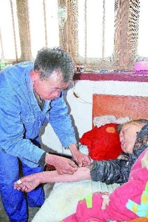 為了節(jié)省治療費,郭光軍學會給妻子打針。 徐升 攝