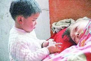 年僅4歲的女兒郭英潔,已經學會了給媽媽拿藥喂水。本報記者 徐升 攝