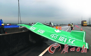 南沙區(qū)多處路牌倒塌。實(shí)習(xí)生羅知鋒 記者杜江 攝