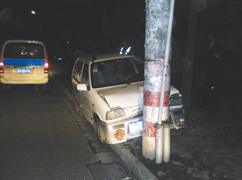 當日凌晨零時10分,一位路人在氣化街上看到一輛奧拓車突然失控,沖上路牙,直接撞在路邊的電線桿上。奧拓車機蓋頂起,擋風玻璃也碎了,兩個氣囊全部彈出,司機趴在彈出的氣囊上一動不動。路人見狀,以為司機受傷出不來了,趕緊報了“119”和“122”。當“122”急救人員趕到后,發現司機竟然是趴在氣囊上睡著了。經檢查,司機額頭被碎玻璃扎破,并沒有大傷。消防官兵趕到后,發現司機并非報警人所稱卡在車內,就駛離現場。在路人的幫助下,滿身酒氣的司機被扶出駕駛室。他的朋友隨后趕到,將其帶去包扎。