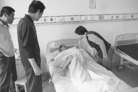 王宗來(lái)(左二)與妻子孫成鳳(右一)到醫(yī)院看望小浩然。
